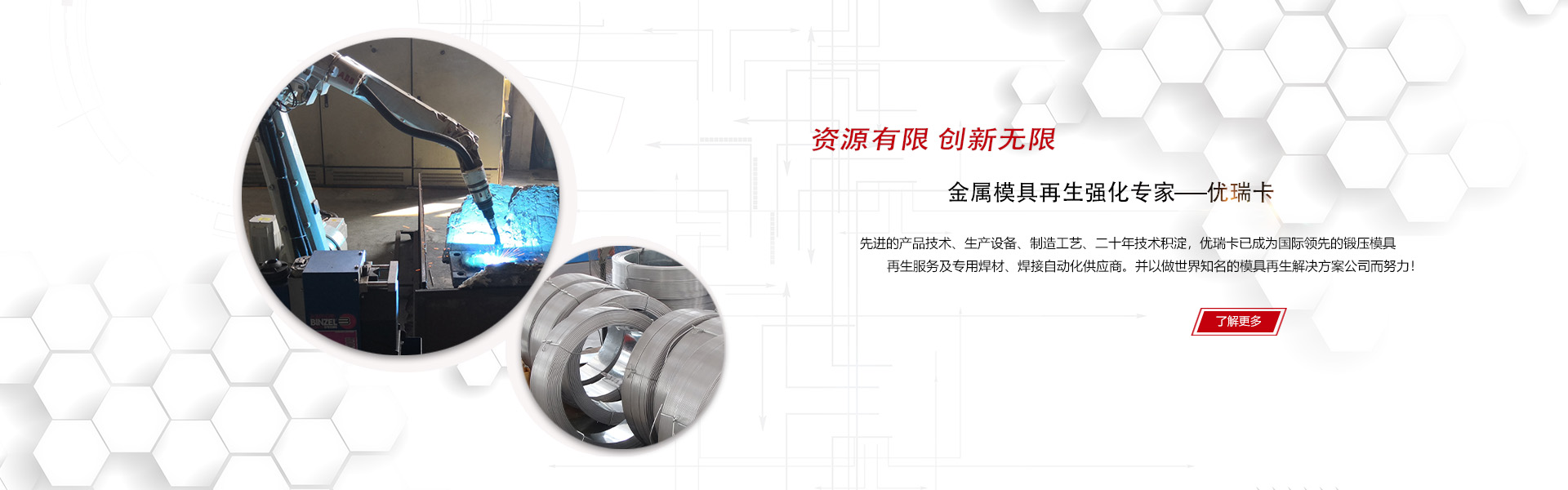 優(yōu)瑞卡(大連)焊接技術(shù)有限公司是國際領(lǐng)先的鍛造模具再生服務(wù)及專用焊材、焊接自動化供應(yīng)商,我們的產(chǎn)品涵蓋金屬模具焊接再生和延壽強化的各個環(huán)節(jié)